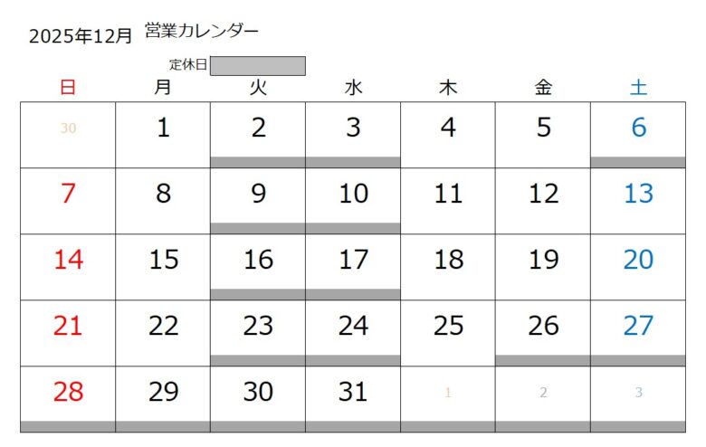 営業カレンダー 2025年11月/25日 新着情報 X (twitter)facebookLINEpocketPinteresthatena 当店は土曜、日曜、営業しております。 お問い合わせお待ちしております。